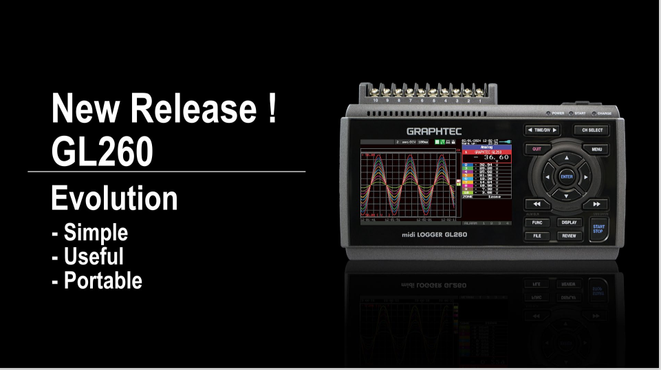GRAPHTEC midi LOGGER GL260 数据记录仪是原GL240记录仪的升级产品,在型号上增加了新服务“G-REMOTE"・三个新功能(报警历史、CH计算增强、记忆循环功能)。