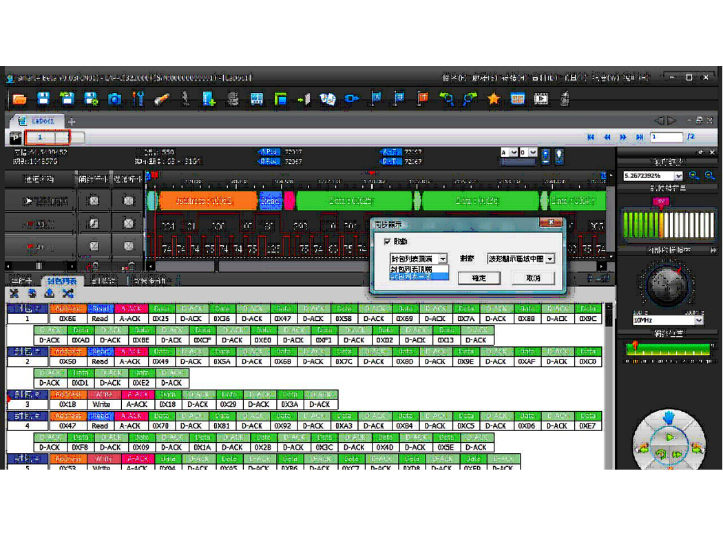 提示:孕龙科技逻辑分析仪软件还有其它强大功能可帮助使用者进行总线分析,如封包列表显示、数据搜寻、脉波宽度搜寻….等等。