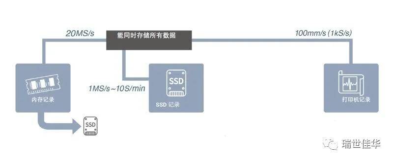 能以100mm/s的高速度打印高分辨率波形,即使中间没纸了,记录的数据也能备份到SSD,以后再打印。