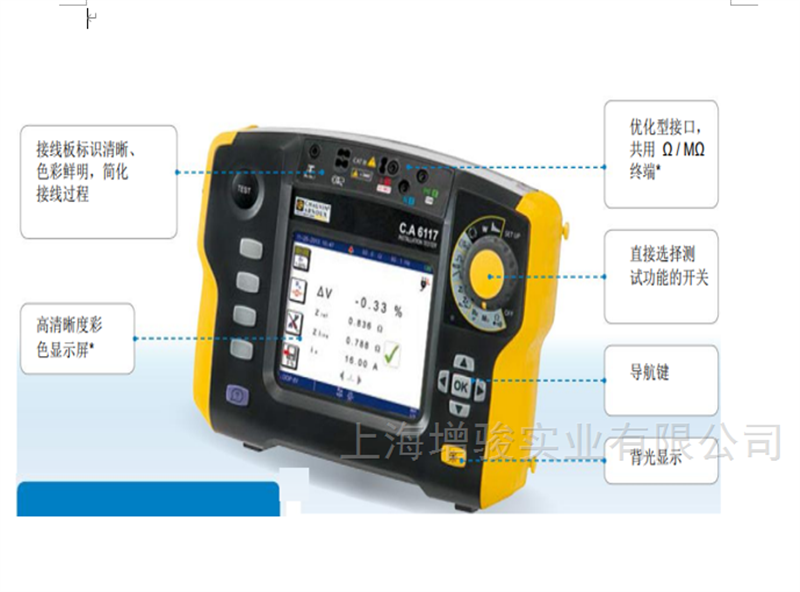 法国CA6113多功能电气安规测试仪人体工程学设计测试仪材质坚固、结构紧凑且重量轻巧,人性化设计、实现快速上手、高效操作。其超大背光彩色图形显示屏易于数据读取。