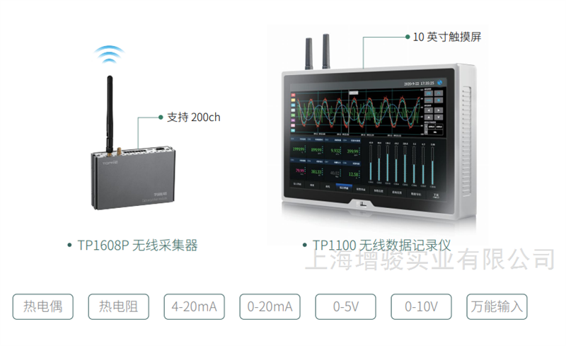 无线数据记录仪TP1100效节省了多通道布线和作业时间,两边分开方便又轻松!支持温度、电压、湿度、压力、流量、液位、电流、频率、振动、转速等等同时测试。