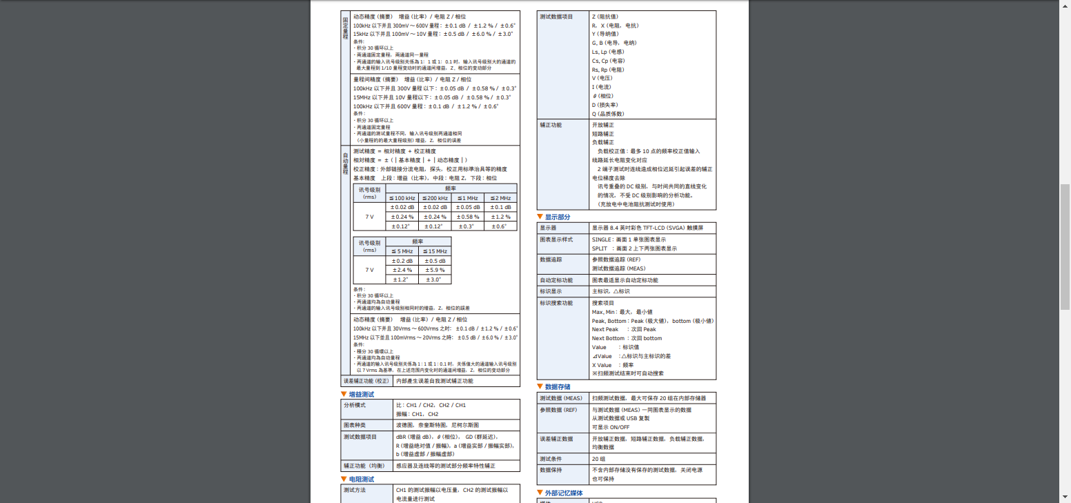 对于设定存储的内容,按照编号顺序读出并扫描测试的功能。对于一个扫描,可将频率范围多分割成 20 个部分,在各自的频率范围内分别按不同的振幅、积分设定等进行测试。滤波器和压电元件等想要高密度地测试特定的频率范围时,多层陶瓷电容器(MLCC)、电感器和变压器等具有偏压依存性的零部件的测试等较为方便。